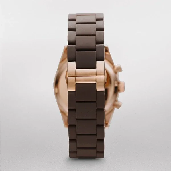 La couleur principale de la montre est le brun chocolat accompagné de petites teintes or roses.