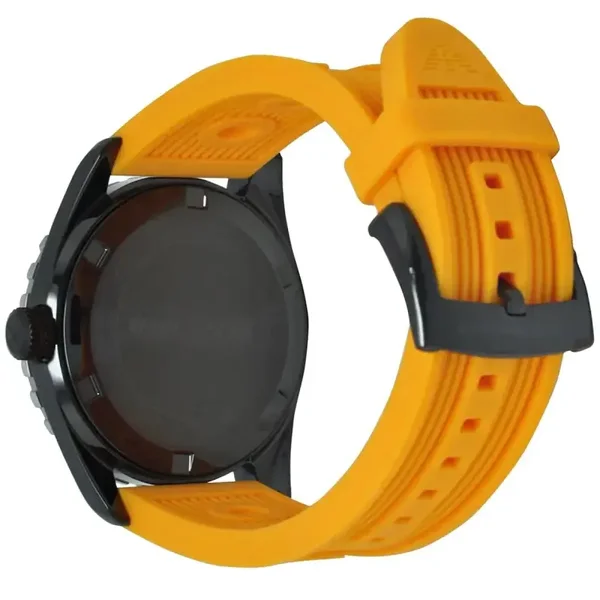 Sa lunette crantée, lui donne une allure racée. Son cadran à fond noir, dispose d'index épais de couleur orange. Un guichet se tient vers la 3ème heure pour indiquer la date.