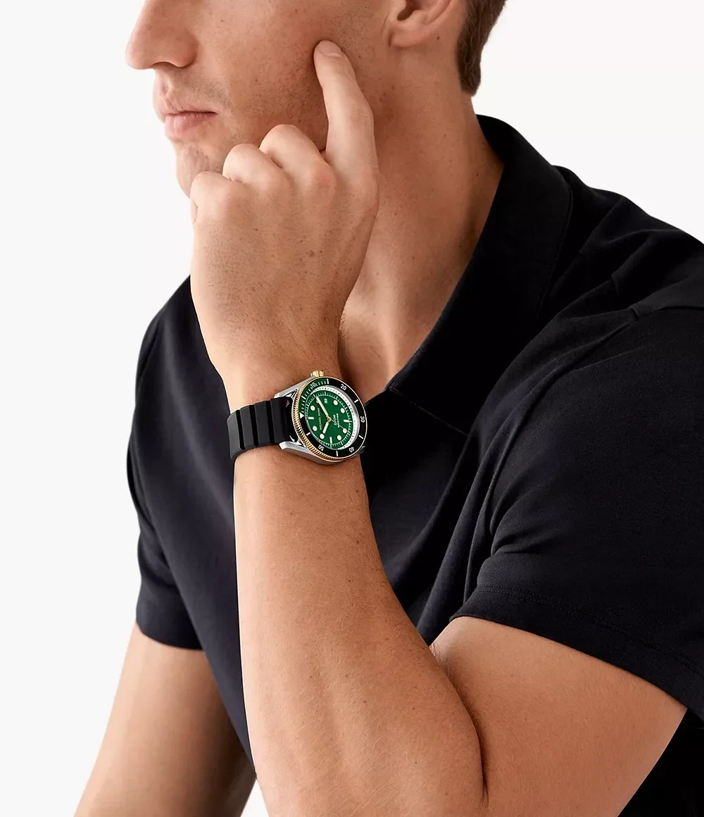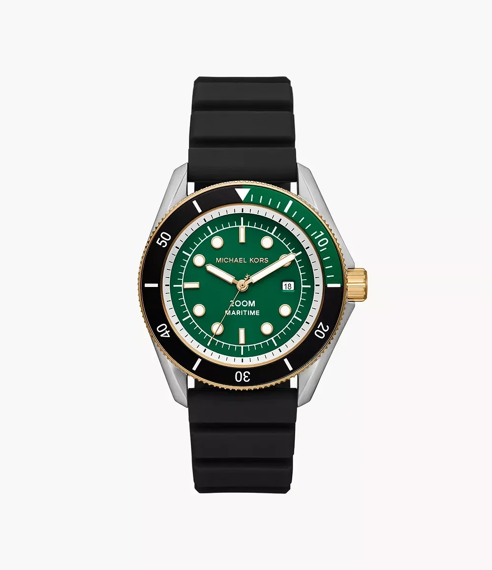 Montre Maritime Michael Kors à trois aiguilles avec date en silicone, noir
