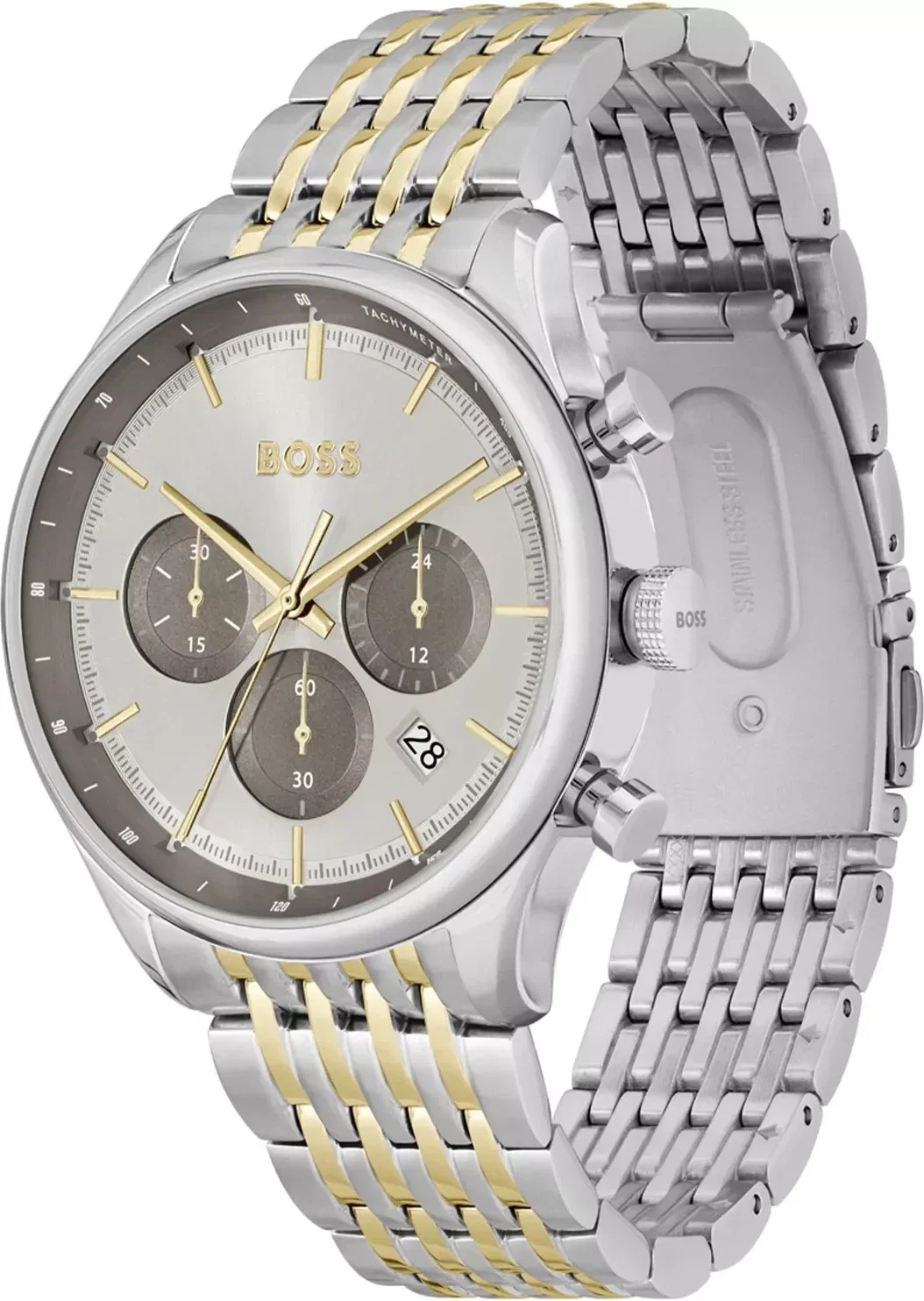 Montre Homme Hugo Boss Gregor 1514053 bracelet acier bicolore cadran argenté multifonctions
