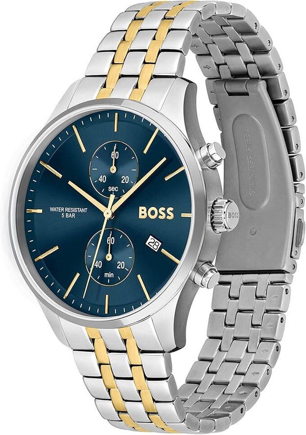 BOSS Montre Chronographe Quartz pour Homme 42 mm Collection Associate avec Bracelet en Acier Inoxydable en Maillons ou en Maille, Fonction Date, 2 sous-Cadrans, Résistance à l'eau 5ATM